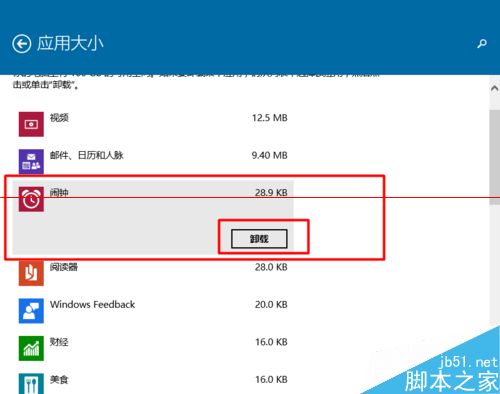 6、例如我想把”闹钟“应用卸载。我们直接点击”闹钟“选择”卸载“就可以了