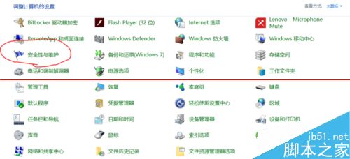 6、重要的来了,我们在众多的选项中找到“安全性与维护”这一选项,点进去。
