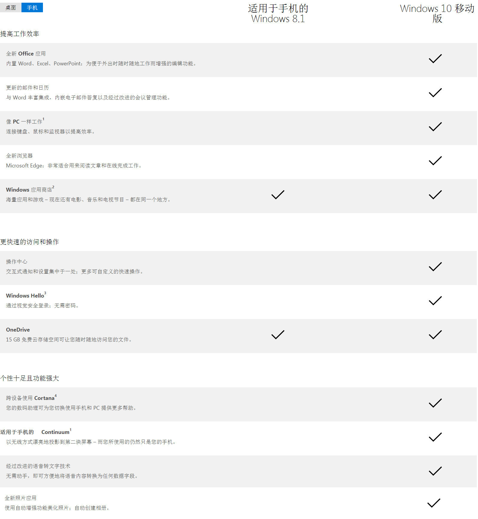 在Win10发布之际,微软在Win10官网上放出了Win10移动版(适用于手机和平板电脑等移动设备,也可以简单地理解为Win10手机版)的对比图,让你一眼看出Win10移动版和Win8.1手机版的区别在哪。