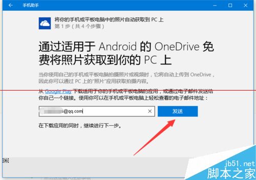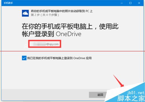 8、在“向导第二步”操作界面中,需要利用如图所示的账号,在手机或平板电脑端登陆“OneDrive”。