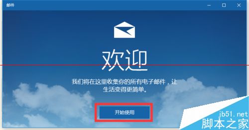 7、此时将弹出一个“电子邮件”管理工具,直接点击“开始使用”按钮。在此需要添加一个新的账户,建议直接使用自己常用的邮箱,以便通过此工具实现收发邮件功能。