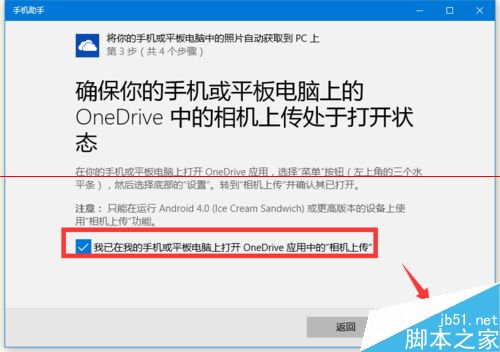 10、在“向导第三步”操作界面中,需要确保手机“OneDrive”工具中的“相册上传”功能处于打开状态。