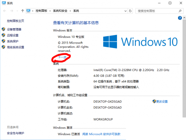 Win10正式版激活后系统信息里有一个“下一步”怎么回事?