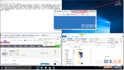 5、可以看到Windows10智能地将所有打开的窗口进行了分屏。