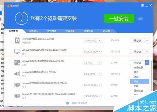 3、如需要,可再次检测安装。本人亲测卸载前未备份,卸载完成后再次检测显示电源管理未安装,点击下载安装完,重启即恢复正常。可以放心卸载。不过安全起见最好在卸载前备份。