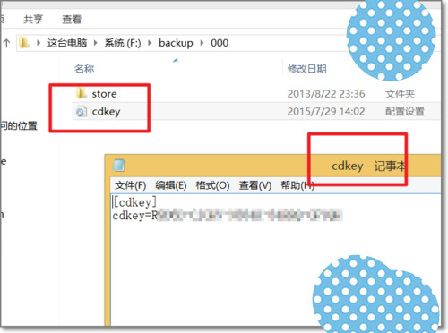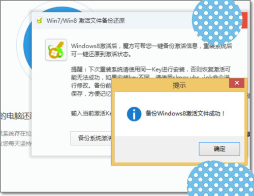 6、备份的文件两种,一个Windows存储激活密钥的文件,一个是TXT记录激活码的文件。以后可以直接使用的魔方还原。