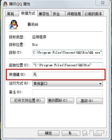 这时我们会看到“快捷方式”选项卡,在“快捷键”一项中显示的是无,心急的朋友是否用鼠标点击,却发现无法删除和输入?其实不必使用Delete,我们只需要在点击输入框后,直接在键盘上按下你想要设定的快捷键组合就可以完成设定。例如下图演示的是使用“Ctrl+Alt+A”作为快捷键,按下三个键,系统就会自动记录下你的设定显示到输入框中,最后点击确认,就完成这项简单的设定了。