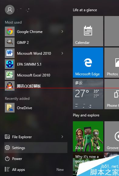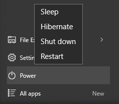 默认情况下,点击Win 10开始菜单中的“关机”按钮弹出的菜单中没有“休眠”选项,下面我们就通过设置来打开休眠选项。