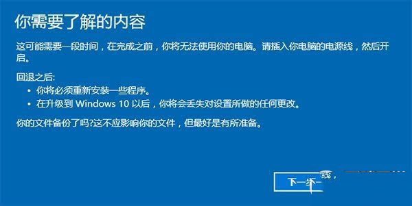 5、需要确认的最后一步,提醒Win7/Win8.1用户可以随时再次升级到Win10。今后免费安装Win10将不再受到“正式版发布1年内”的时间限制,也不受安装方式的限制,纯净安装也将完全免费。