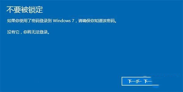 4、对于已经设定登录密码的用户,回退后密码将被恢复,因此你需要知道该密码才能正常登录。确认该消息不会影响到你的使用后,点击“下一步”继续。