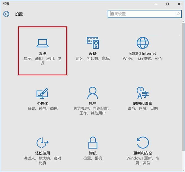2、在“设置”中选择“系统”