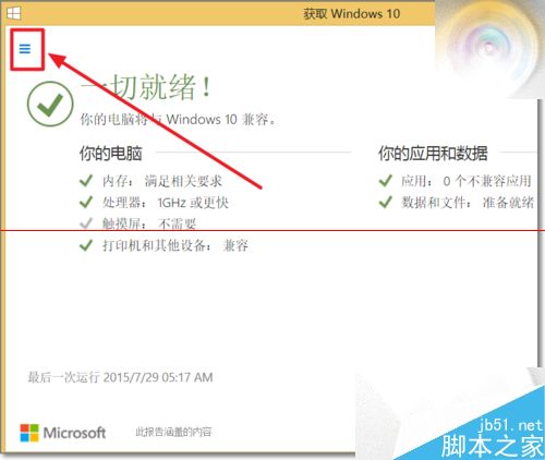 3、报告会例出哪些项目兼容前面有打勾。都没有问题一切就绪,你的电脑将与Windows10兼容。详细还要查看一下此报告涵盖的内容。
