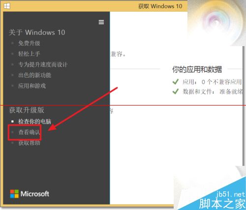 4、点击功能菜单中的获取Windows10升级版查看确认。