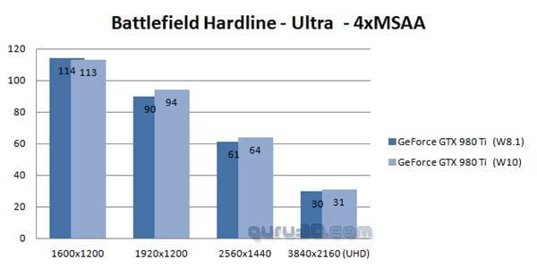相关推荐:win8和win10哪个好?Win10、Win8性能对比详细评测 直接说下结论吧:他们测试的这几款游戏中,Win10与Win8.1性能上还是没什么差距,《战地:硬仗》中有一点差别,不过那更可能是驱动改善。