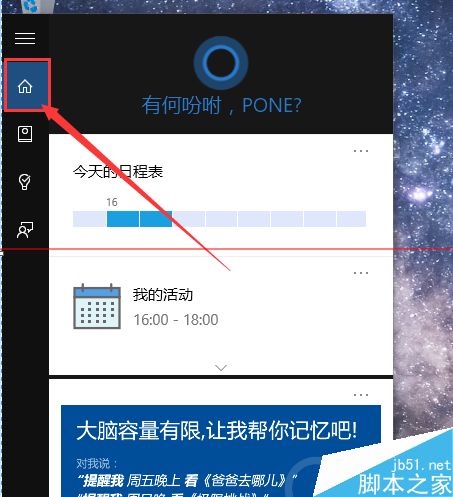 2、接下来,打开微软小娜主界面之后,点击页面左侧的第一个菜单按钮,如下图所示。