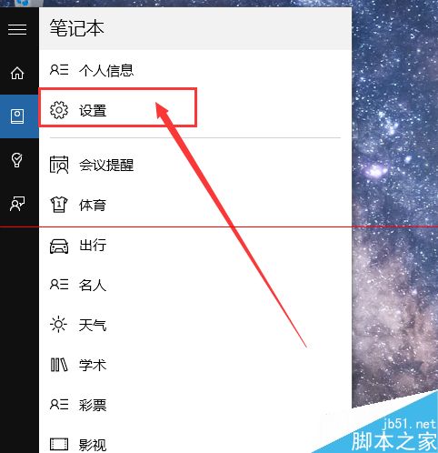 3、接下来,我们就会打开微软小娜的设置菜单,在设置菜单中点击选择“第二项”,就是微软小娜的设置选项,在设置菜单中我们可以自定义微软小娜的功能。