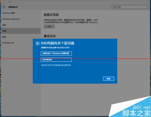 8、选择删除你可以选择删除系统盘(一般是C盘)还是删除所有盘符的文件