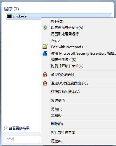再按Windows键,输入“cmd”,但不要点击,而是右键后选择“以管理员身份运行”。