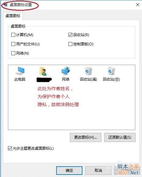 5、点击后,弹出桌面图标设置对话框,这里可以看到此电脑,如下图所示。