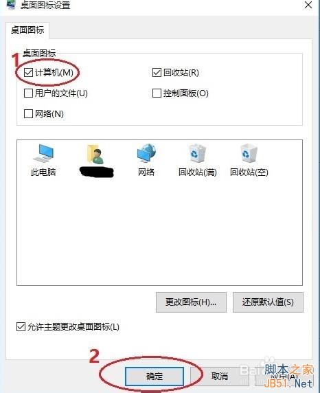 6、在左面图标设置对话框中勾选计算机,然后点击确定按钮,如下图所示。