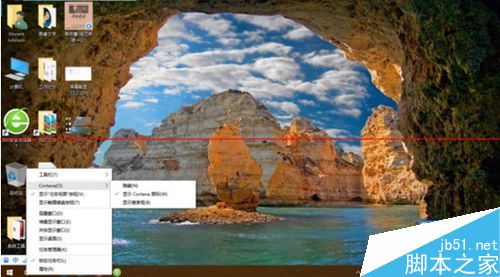 5、在任务栏上点击鼠标右键-鼠标定位至菜单-cortana-显示-cortana图标,这样还可隐藏小娜搜索栏,使任务栏看起来更美观