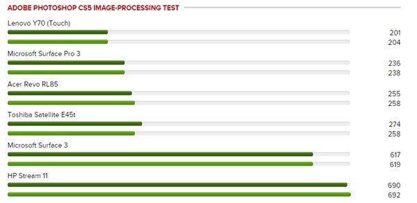 测试使用的Multimedia Multitasking编码了一个视频,在后台播放独立的HD和4K文件。Photoshop Image则是用于处理图像尺寸、滤镜以及从原文件中保存高分辨率图片。