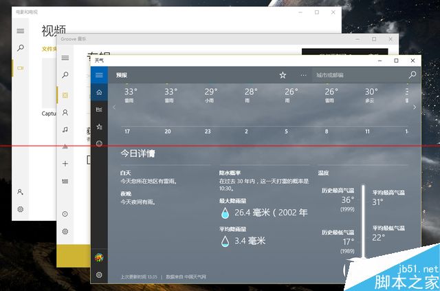 看到下面我们打开的这几个应用,全都属于应用商店下载的通用应用,但是在操作模式上和普通程序没有任何的区别,支持最大(小)化和关闭窗口。这样的结构你还会觉得不习惯吗?所以在Win10中取消了“媒体中心”,直接使用“电影和电视”应用就可以播放视频,用音乐应用播放音乐。
