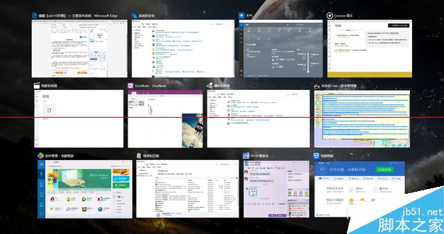 使用任务视图,我们可以新建无数个桌面,在底部我们可以看到每个桌面的预览图。每新建一个桌面我们都可以重新开启一套程序,互相之间各不干扰。比如我们在“桌面1”中打开音乐、视频、等娱乐软件,再在“桌面2”中打开浏览器、Office等工作软件,就能很好的提升效率,不会一堆软件显示在一个桌面上乱糟糟的。