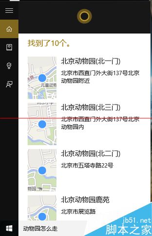 接着我们要说,Cortana不单单是一个搜索工具,同时它还是你的个人助手。比如我们输入“看看今天天气”、“到动物园怎么走”等等这些问题,Cortana可以直接给出答案,而不是再去搜索网页。在手机上用过Siri或者Cortana的用户应该都不会陌生这样的助手功能。