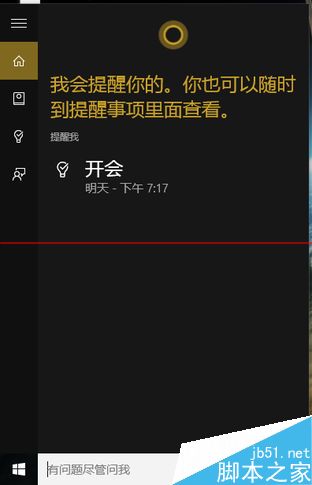 Cortana也可以为我们安排日程,只要输入“提醒我XXXXX”之类的文字,Cortana就会调出日程安排系统,并且在规定的时间给予提醒。另外说一句,Cortana是支持全程语音输入的,语音识别率出奇得高。