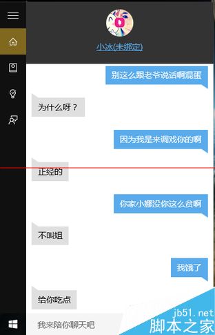 最后,我们还可以在Cortana中召唤“微软小冰”,这个在社交平台出了名的贫嘴妹子。这是一个微软开发的智能聊天机器人,能够接受用户的各种调戏,也会机智地“反调戏”,闲得无聊时可以找她解解闷。