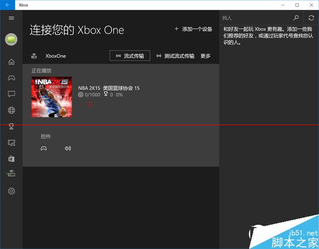下面我们重点要说两个新加入的功能,一个就是Xbox One串流游戏。在应用的左侧导航栏可以看到一个“连接”的项目,如果你的Xbox已经通过WiFi连接了电脑,就能在这里获取到信息。