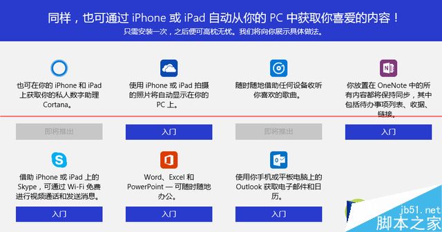 不过在这个应用中,我们可以看到推荐的一系列跨平台应用,比如OneNote、Office、OneDrive、Skype、Cortana等等的iOS/Android版。这就是我们说的“精神”上的连接。