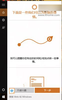 具体来说,用户点开屏幕左下角“搜索Web和Windows”时,该建议就会弹出。小娜会从记事本、语音提醒、智能搜索、跟踪航班、包裹等各个方面向用户介绍自己的功能。点击进入,用户则可以浏览更详细的使用指南,让第一次与小娜见面的你不再抓耳挠腮、无所适从。