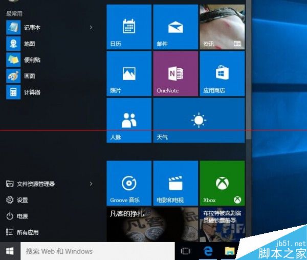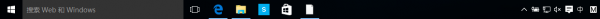截图中展示的系统安装完成后界面,任务栏上从左到右依然是开始菜单、Cortana(小娜)、任务视图、Edge浏览器和文件管理器,后面则是Skype图标及应用商店图标,可见此版本直接预装了Skype。