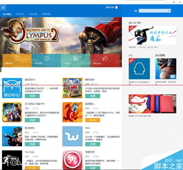 据了解,应用商店才是该版本最大的亮点。应用商店并不是之前系统里自带的应用商店Beta版,而是一个全新设计的版本。此版本采用了资讯、财经、健康等自带软件的UI设计,横轴可以滑动切换。另外还提供每日精品、互动专区、分类合集、专题评测这几个模块,内容相当丰富,而且非常本地化。这也是该网友猜测此为微软中国团队开发产品的依据之一。