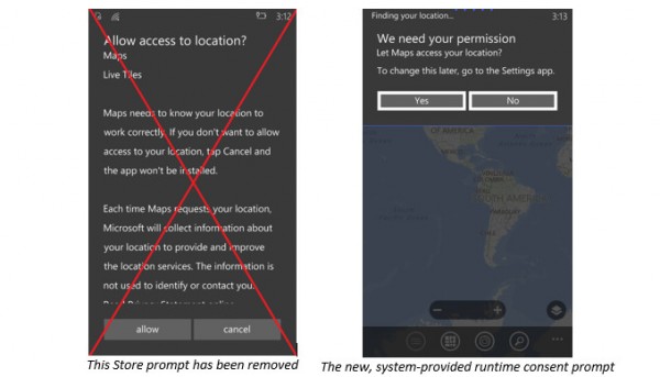 在致开发者的博客文章中,Windows 10 Mobile开发团队解释了系统在处理地理位置信息,以及与此相关的用户交互方面的方法,这与先前的Windows Phone 8是有差异的。
