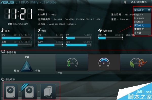 如果是中文,以华硕的某款主板为例,一般可以直接用鼠标拖动,优先启动项,如图把你装有U盘系统盘的U盘拖到第一个就可以了,如图(不同主板不一样):