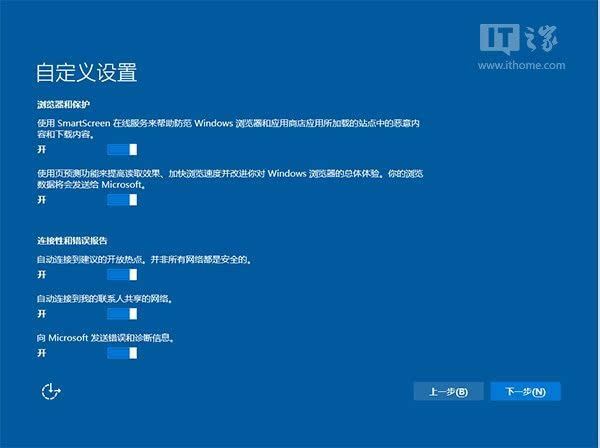▲你可以在上述选项中选择可向微软发送的数据信息。但要注意,如果关闭“位置”信息,则当前设备无法定位(平板电脑等移动设备慎用)。点击“下一步”后完成这部分设置。