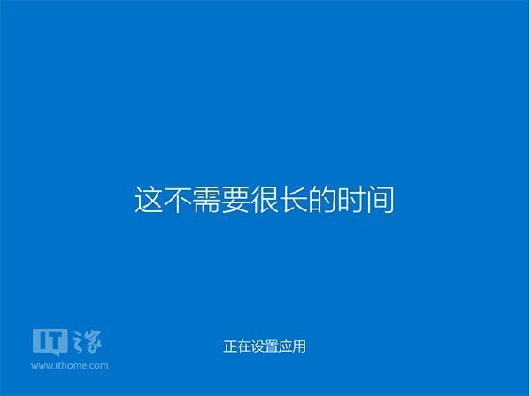 ▲等待Win10进行应用设置,使用微软账户登录的用户需要等待更长时间