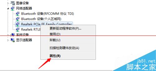 3、在网卡列表中,右键点击当前使用的网卡,选择【属性】选项