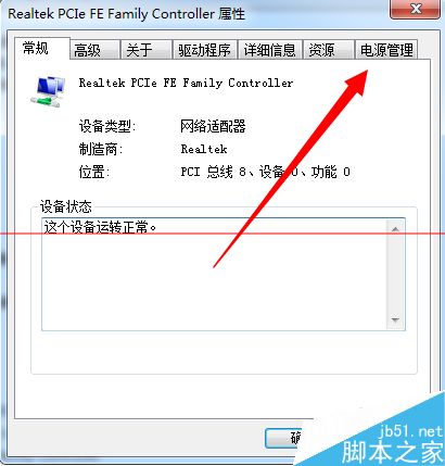 4、进入网卡驱动属性界面,点击上方菜单栏处【电源管理】选项