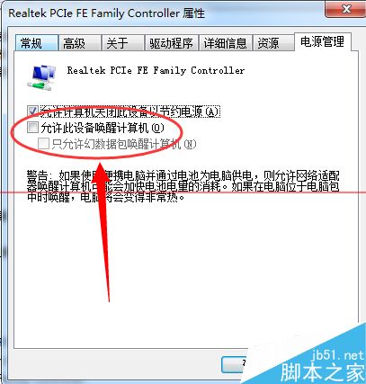 5、将【允许此设备唤醒计算机】前面的勾取消,点击确定