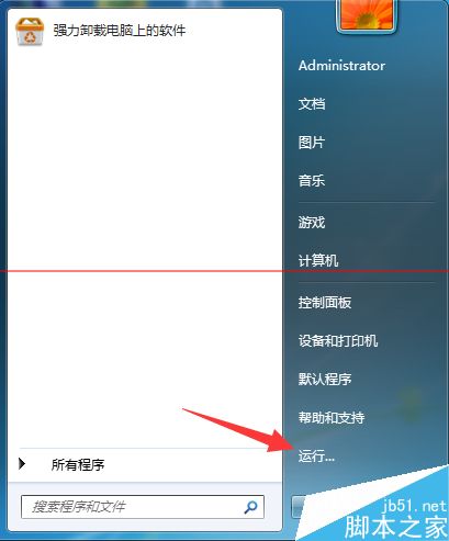 6、此时打开电脑开始菜单,找到【运行】选项,点击打开