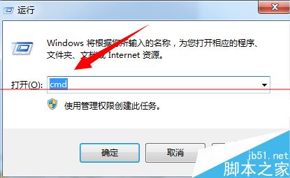 7、进入运行界面,在命令对话框输入 cmd 点击确定,进入DOS界面