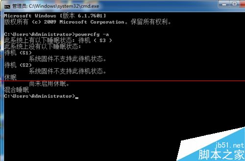 8、进入命令行界面,输入 powercfg -a 命令,点击回车来查看当前电源设备是否正常