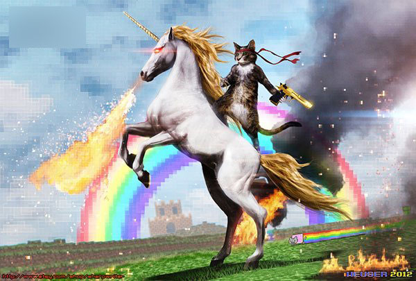 虽然忍者猫先生换了坐骑,但其逗比本性没有更改,反而愈演愈烈,这一点从新坐骑的“武器”上就可见一斑。不过,根据Gabriel Aul给出的忍者猫原始形象来看,它也曾经“高大伟岸”过。