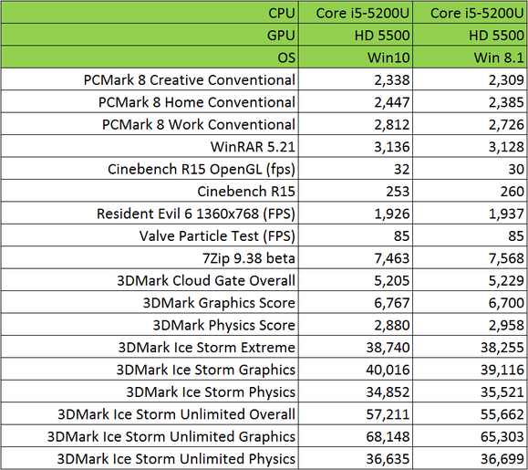 经过测试结果显示Windows 8.1家庭版和Windows 10 Build 10240系统两者之间的性能差异并不是很大。