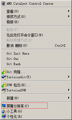 1、右键点击桌面,在菜单中点击“屏幕分辨率”。
