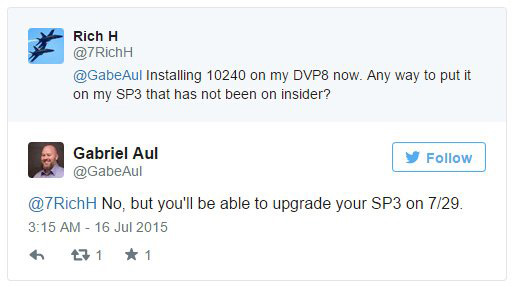 对于想要免费升级Win10的正版Win7/Win8.1用户,比如Surface Pro 3用户,微软建议等到7月29日再选择升级。